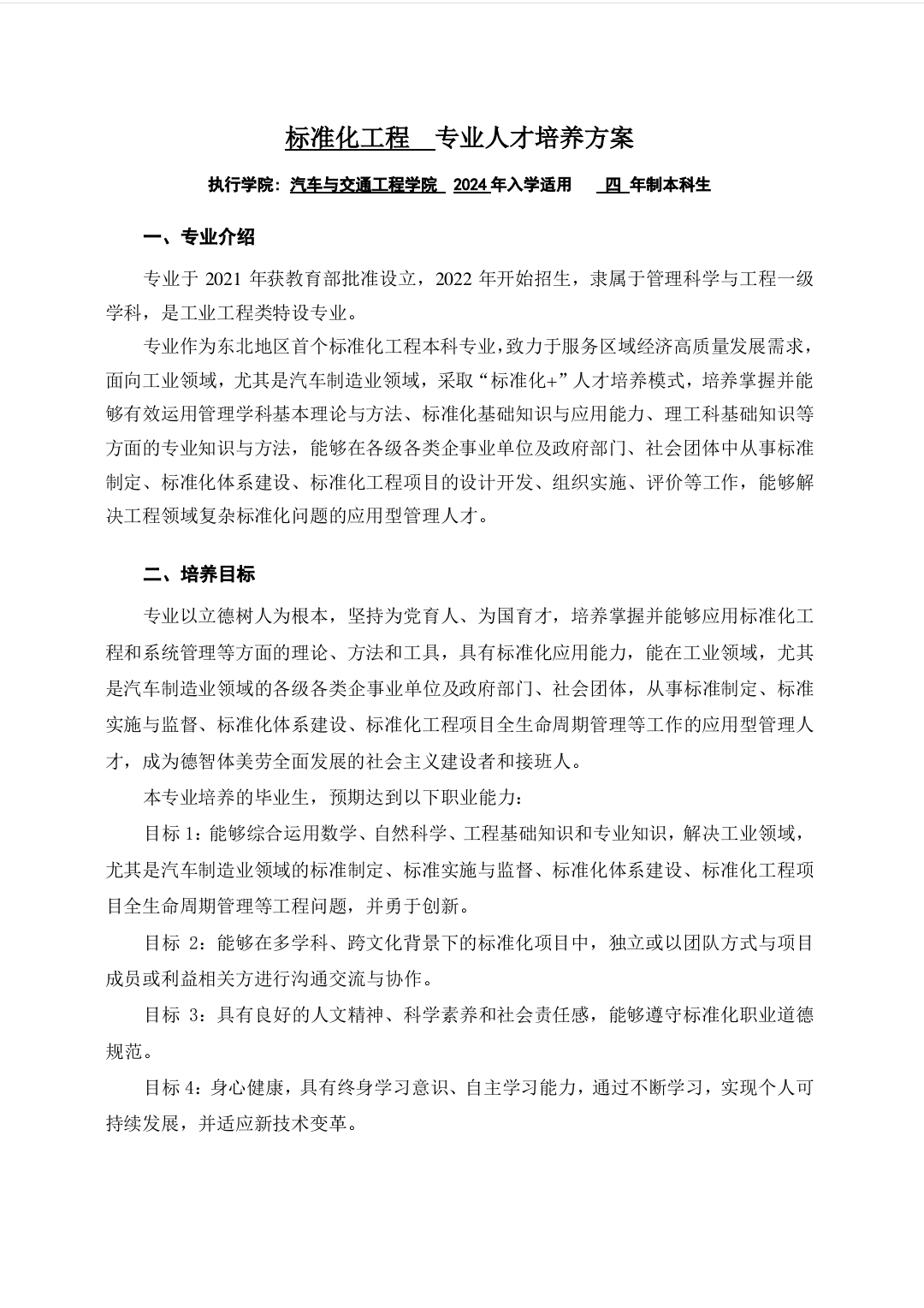 标准化工程专业人才培养方案