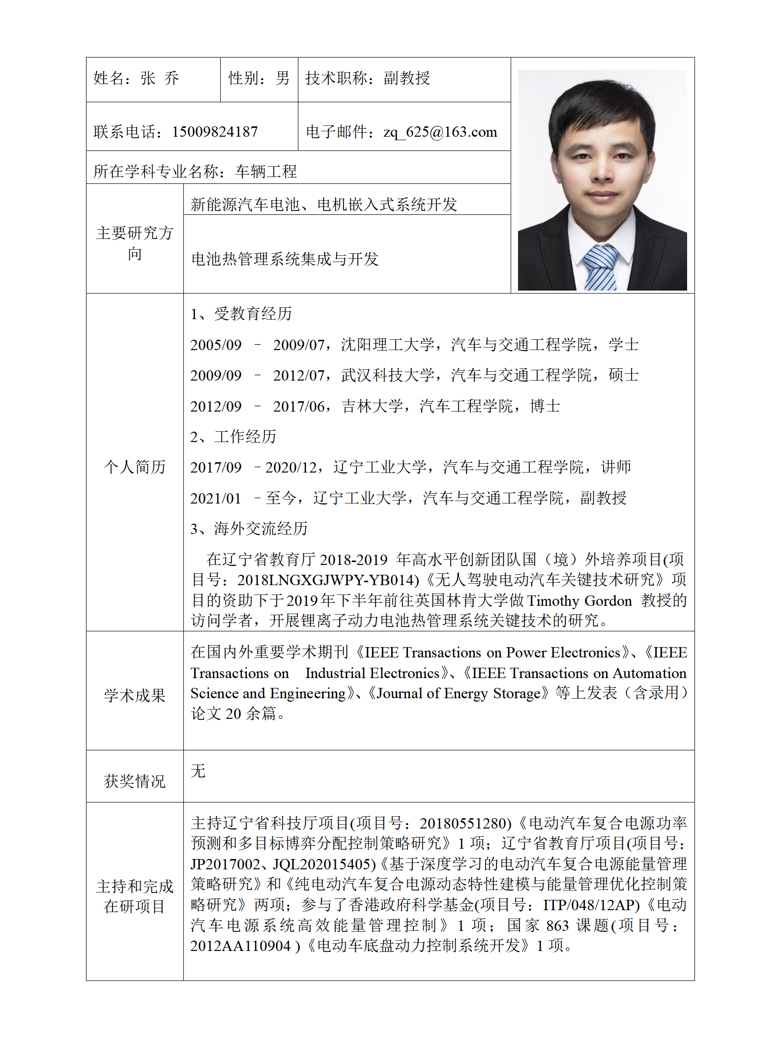 车辆工程导师简介