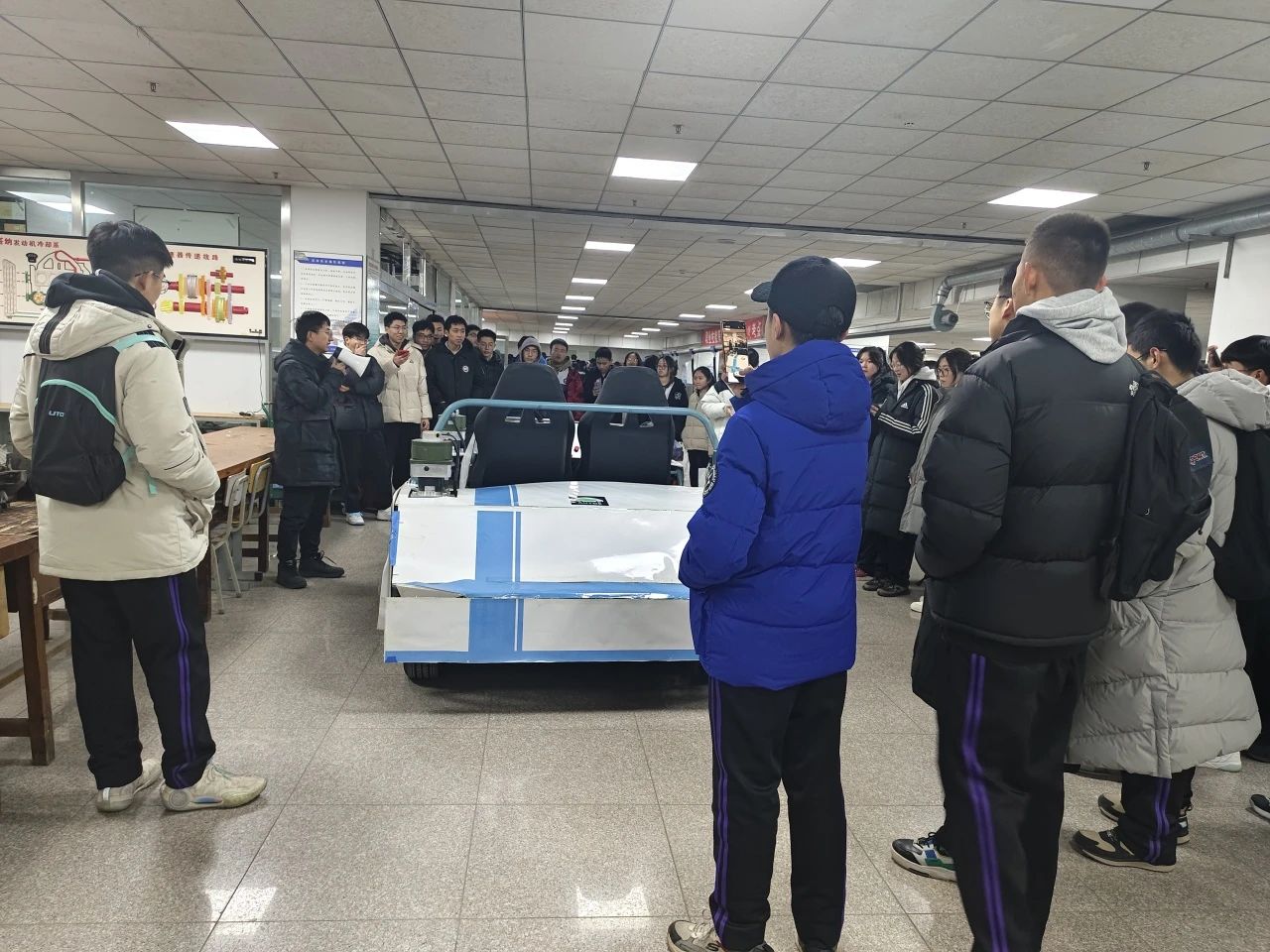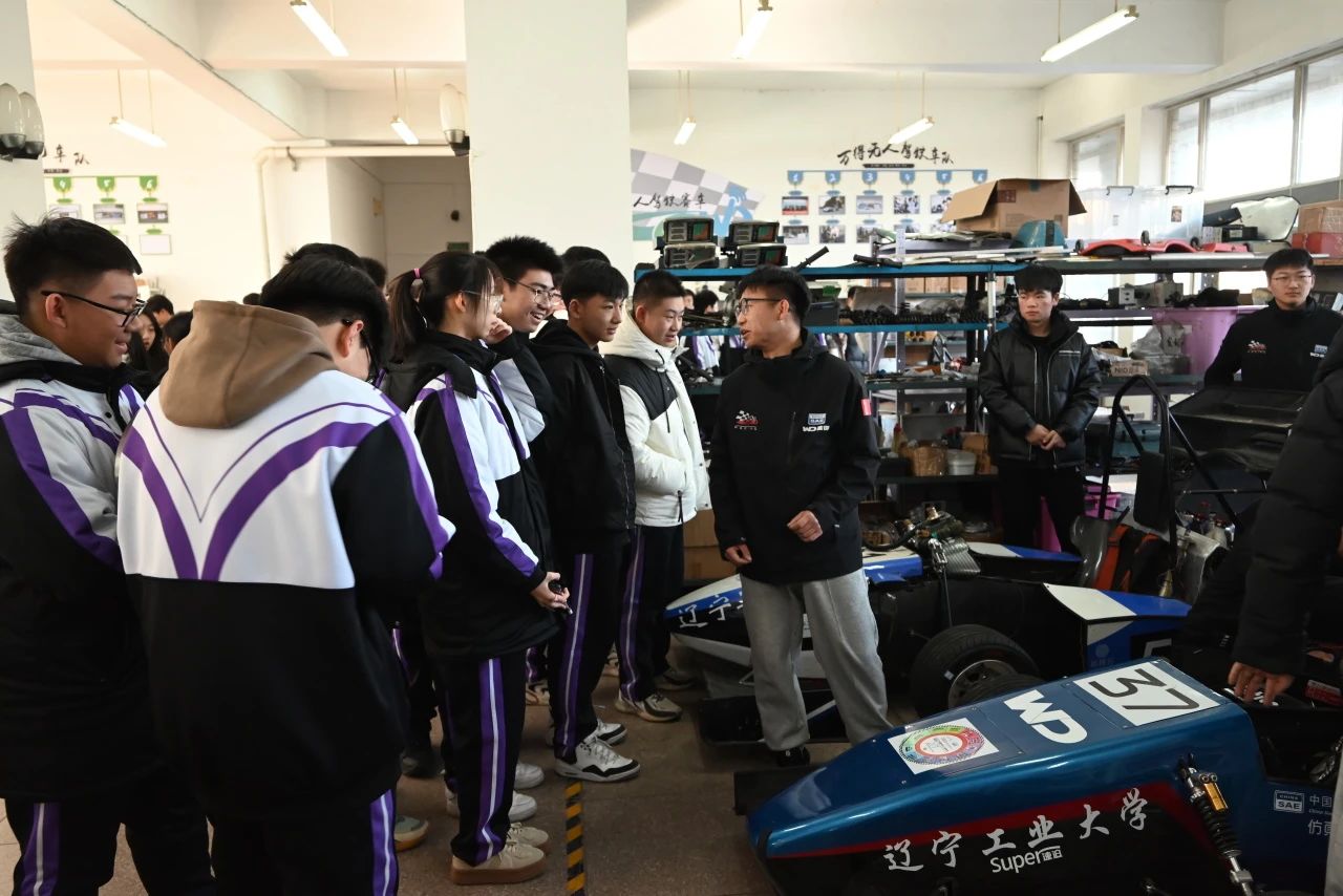 通过李刚老师的讲解,来访师生了解到了中国大学生方程式汽车大赛、万得车队的历史以及历年来所获得的成绩。同时,各个车队队员结合问题向锦州铁路高中师生进行赛车相关知识的讲解与拓展介绍。