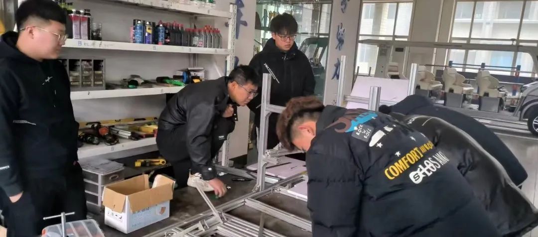 1月16日,队员们继续搭人机台架,在此基础上,通过不断地反复测量、反复定位,来确定座椅和踏板的位置。