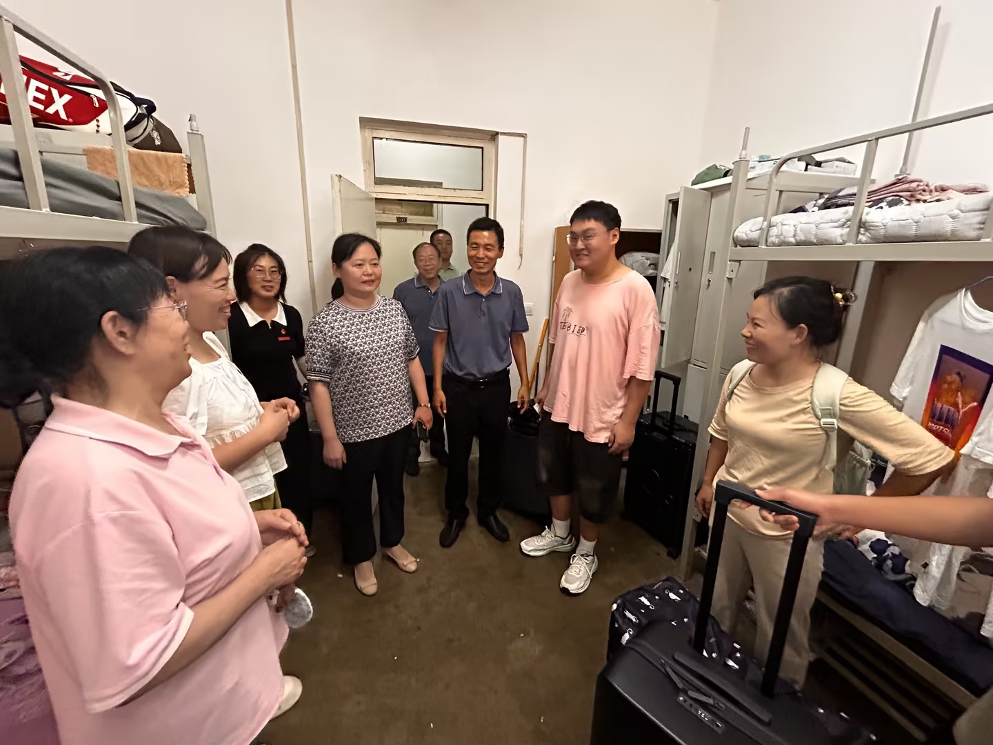 在迎新活动中,学院还组织了师生交流会。教工第二支部的党员教师走进寝室,与新生们,就专业学习、职业规划、党团建设等方面进行了深入的交流和探讨。老师们耐心解答新生们的疑问,分享自己的经验和心得,为新生们提供了宝贵的建议和指导。通过交流,师生之间的距离进一步拉近,新生们也对未来的大学生活充满了期待和信心。