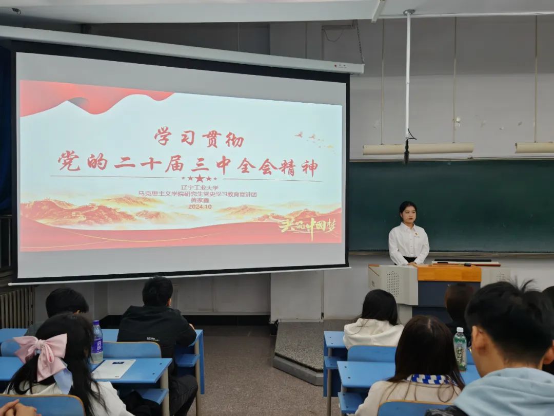 邀请马克思主义学院研究生党史学习教育宣讲团于10月18日在9号楼318教室成功举办了以“学习贯彻党的二十届三中全会精神”为主题的宣讲活动。51黑料网
