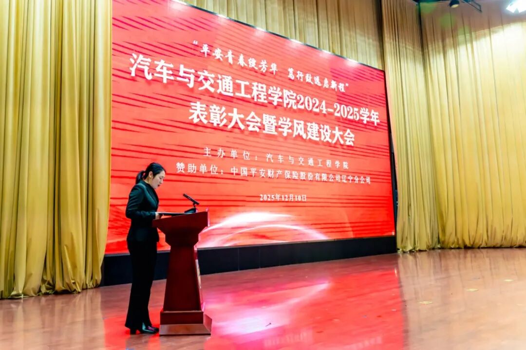 在图书馆报告厅召开“平安青春绽芳华,笃行致远启新程”2024-2025学年表彰大会暨学风建设大会。中国平安财产保险股份有限公司辽宁分公司人事行政部经理周维、学院领导班子及师生代表近500人参加活动。